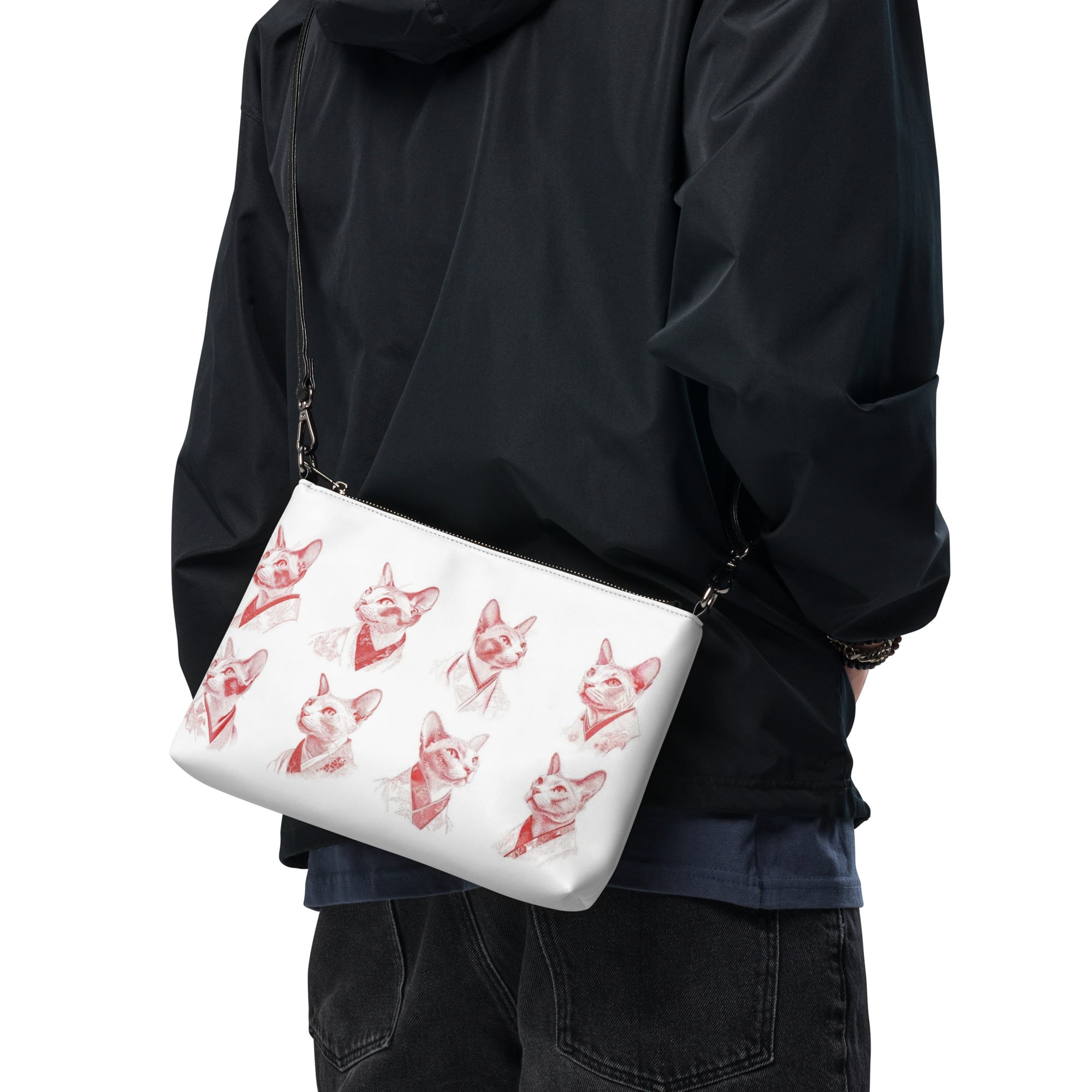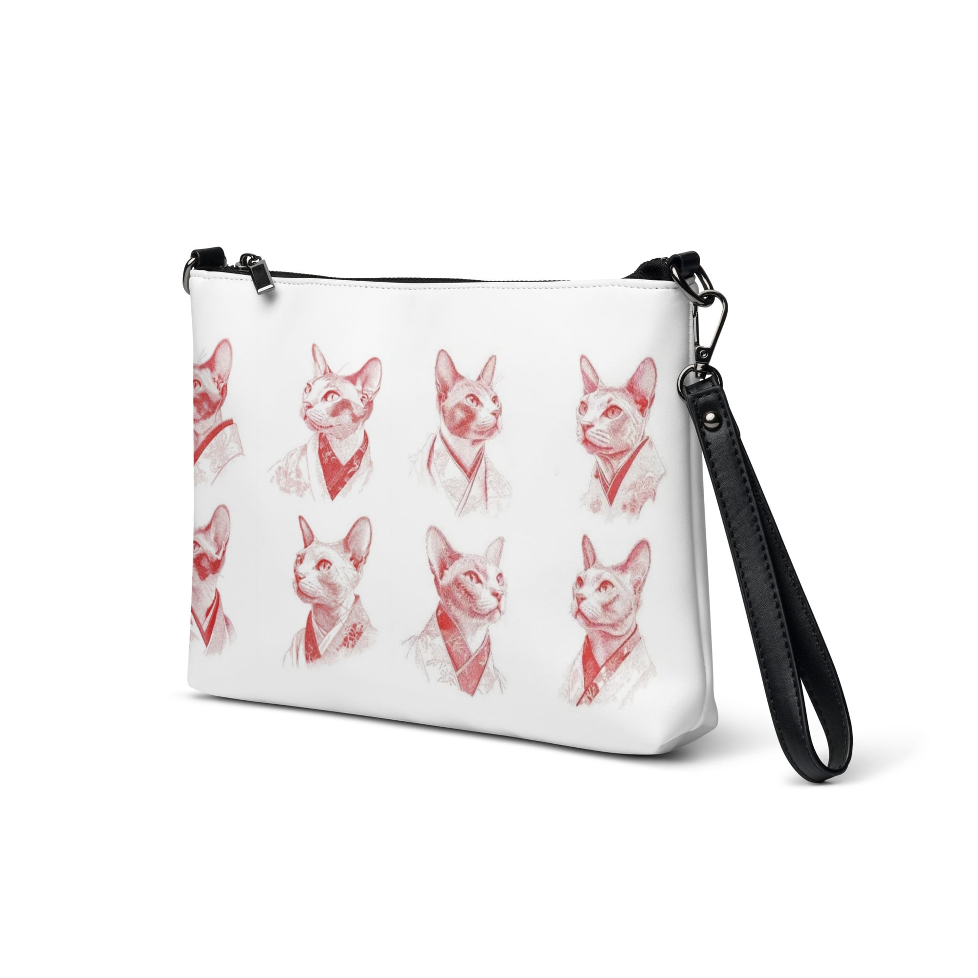 繊細な赤い線で描かれた、粋な江戸猫たちの肖像画。一匹一匹が持つ、凛としたオリエンタルショートヘアの表情と個性が、あなたの日常にモダンな彩りを加えます。アートを気軽に持ち歩く、大人のためのクロスボディバッグ/ショルダーバッグです。