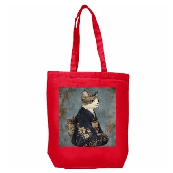 This Japanese-style tote bag features a graceful cat in a kimono. The calming indigo canvas creates a refined, retro feel. It's a perfect item for everyday use or as a gift.