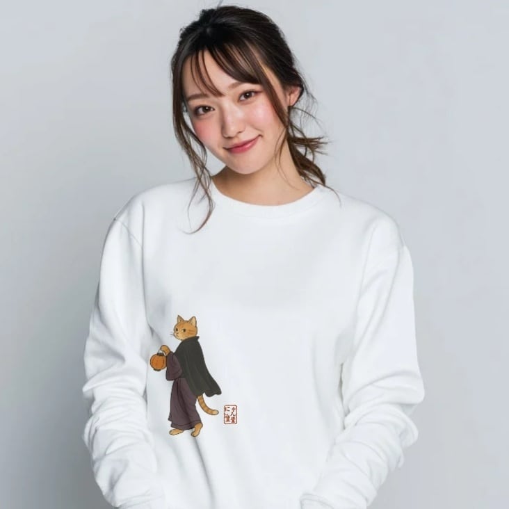Hanging from his hand is a pumpkin lantern.This Edo Halloween long-sleeved T-shirt is full of chic and a little bit of playfulness.