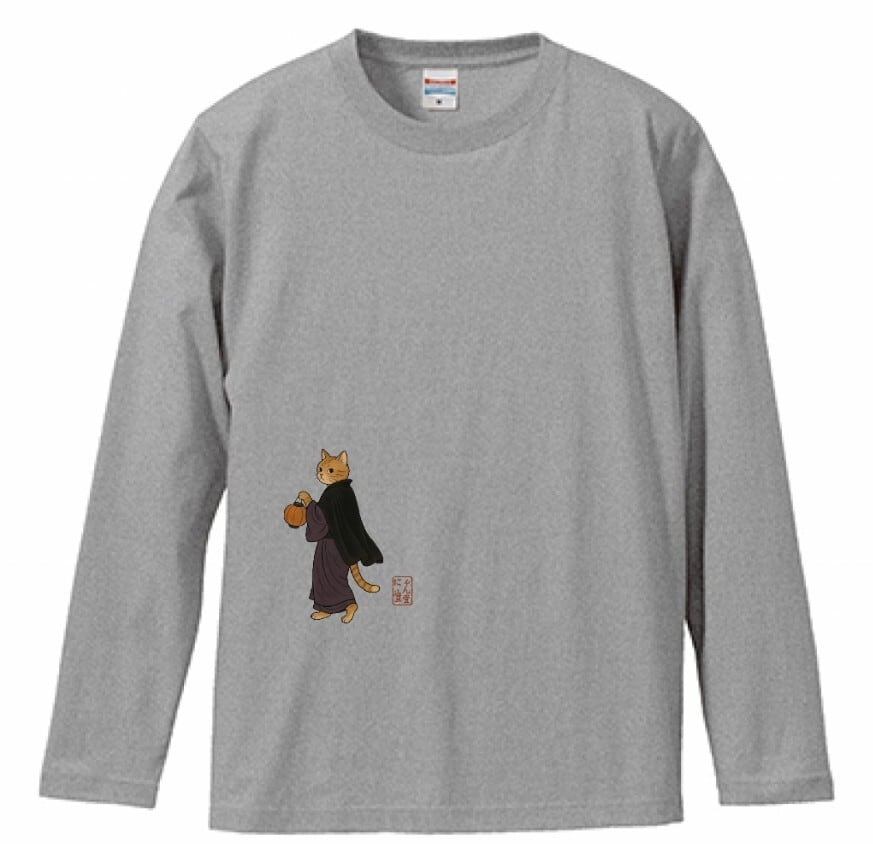 「見返り提灯猫 」 ロングTシャツ リブなし/ "Lantern Cat" Long Sleeve T-Shirt (No Rib)