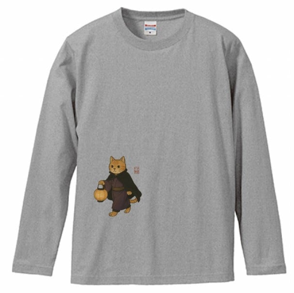 「宵の灯 - 提灯旅猫」 ロングTシャツ リブなし/ "Evening Lights - Lantern Traveling Cat Long Sleeve T-Shirt" Long Sleeve T-Shirt, No Ribbing