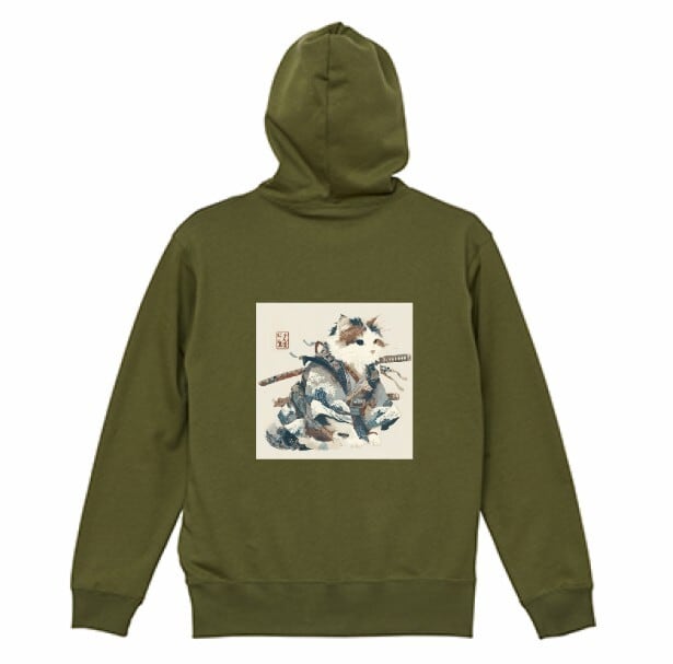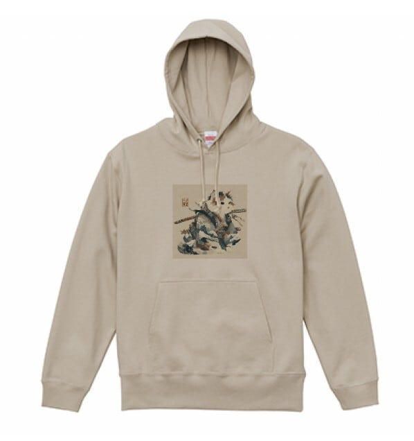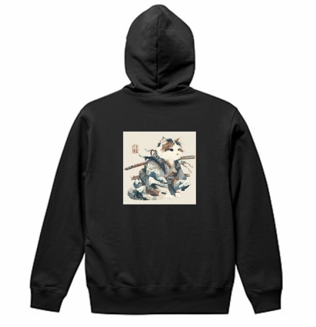 「 波を纏う武士猫、見参」プルオーバーパーカー/ "The Wave-Clad Samurai Cat Appears" Pullover Hoodie