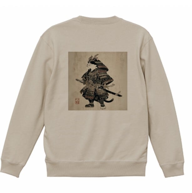 [猫武者、魂をまとう ]スウェット リブ付/ [Neko Musha, Wearing Soul] Sweatshirt with Ribbed Detail