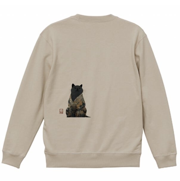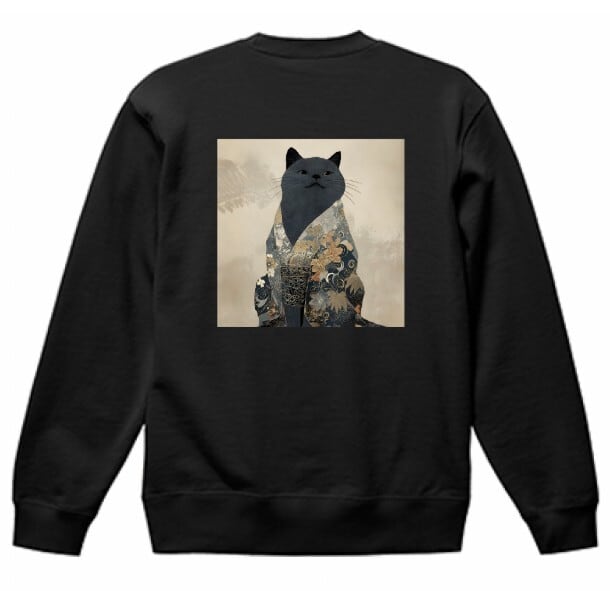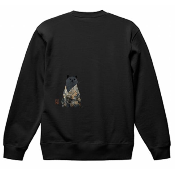 A kimono-clad cat exuding dignified beauty.Gold and indigo floral patterns bloom against a muted ink color.Edo chic meets modern fashion in this limited-edition autumn/winter sweatshirt from Nyanko Rekido.